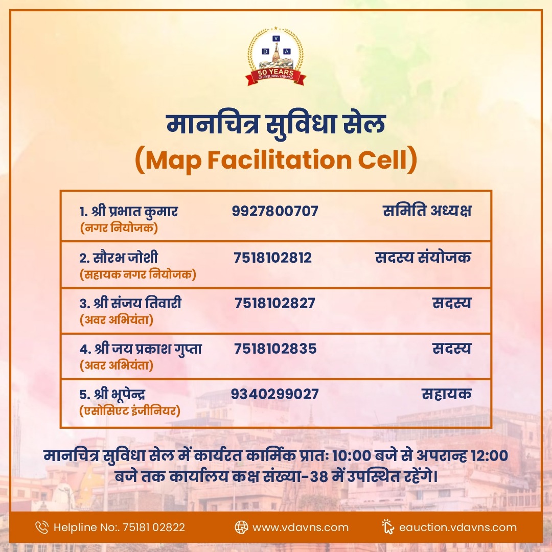 वाराणसी विकास प्राधिकरण से प्राप्त नक्शों का नगर निगम वाराणसी एवं जलकल द्वारा 15 दिनों में अनापत्ति प्रमाण पत्र प्रदान किया जाएगा