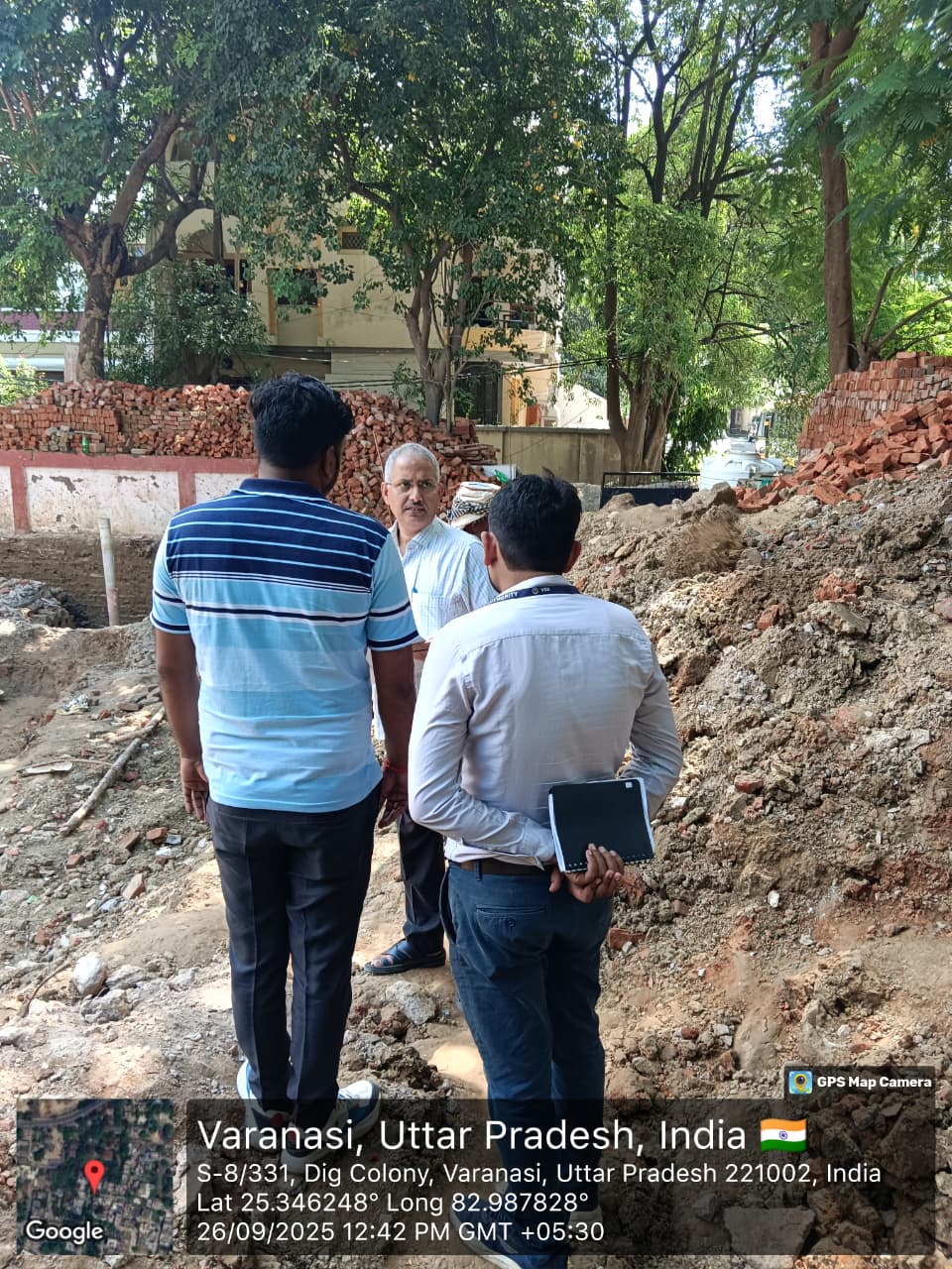 26/09/2025 को अपर सचिव डॉ. गुडाकेश शर्मा द्वारा जूनियर एसोसिएट इंजीनियर शिवम सिंह साथ प्राधिकरण द्वारा संचालित निर्माणाधीन परियोजनाओं का निरीक्षण