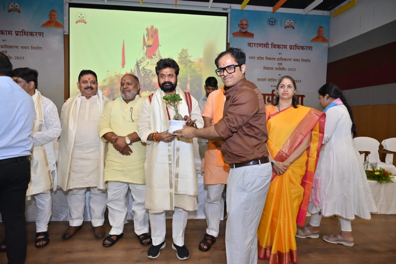आज दिनांक 24/07/2025 को वाराणसी विकास प्राधिकरण के उपाध्यक्ष श्री पुलकित गर्ग के अध्यक्षता में उ०प्र० विकास प्राधिकरण भवन निर्माण एवं विकास उपविधि-2025 एवं आदर्श जोनिंग रेगुलेशन-2025 के सम्बन्ध में कार्यशाला का आयोजन किया गया l कार्यशाला के मुख्य अतिथि मा० राज्य मंत्री (स्वतंत्र प्रभार/विधायक वाराणसी उत्तरी) रविन्द्र जायसवाल , मा० राज्यमंत्री/स्वतंत्र प्रभार/ एम०एल०सी० दयाशंकर मिश्रा "दयालु" , मा० विधायक कैंट वाराणसी सौरभ श्रीवास्तव, मा० विधायक अजगरा त्रिभुवन राम , मा० विधायक सेवापुरी नील रतन नीलू, मा० सदस्य विधान परिषद्/जिला अध्यक्ष भाजपा हंशराज विश्वकर्मा, मा० विधायक मुगलसराय रमेश जायसवाल, मा० महापौर नगर निगम अशोक तिवारी, मा० जिला पंचायत अध्यक्ष पूनम मौर्य , मा० सदस्य वा०वि०प्रा० अम्बरीश सिंह "भोला", मा० सदस्य वा०वि०प्रा० प्रदीप अग्रहरी, मा० सदस्य वा०वि०प्रा० साधना वेदांती उपस्थित रहीं l