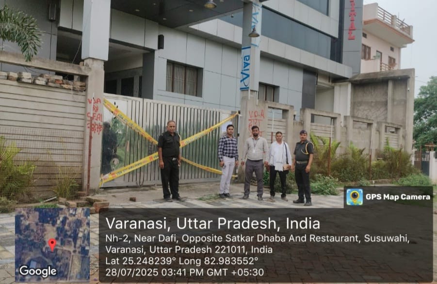 ● वार्ड-नगवां, के अंतर्गत श्री वरूण पाठक व श्री पी0एस0वर्मा द्वारा ए बजरंग नगर के पास डाफी, थाना.लंका में रैनबो हास्पिटल के नाम से बिना मानचित्र स्वीकृत कराये लगभग 6000 वर्गफीट के भूखण्ड क्षेत्रफल में बी+जी+4 तलों का निर्माण किए जा रहे अवैध निर्माण को उ०प्र० नगर नियोजन एवं विकास अधिनियम 1973 की सुसंगत धारा- 27 (i) के अन्तर्गत नोटिस की कार्यवाही करते हुये अतः आज दिनांक 28.07.2025 को स्थल को सील कर सम्बन्धित थाने अभिरक्षा में सौंप दिया गया।