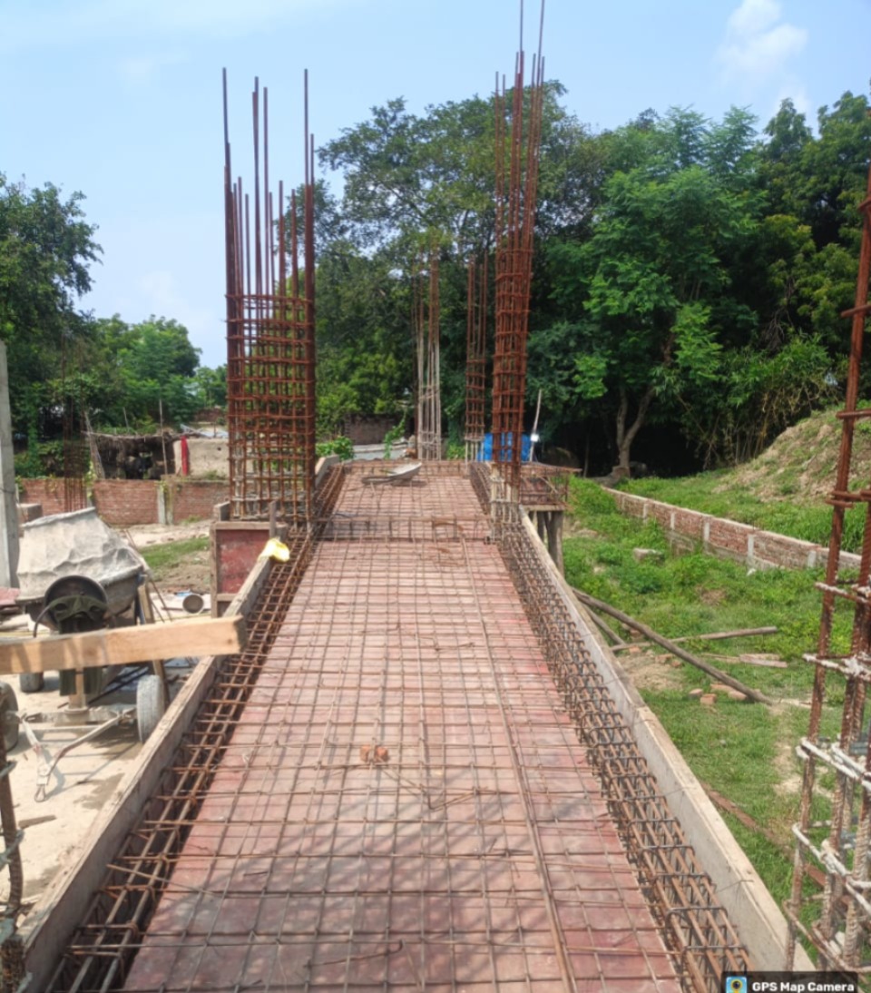 ठठरा ग्राम पंचायत में मॉडल सामुदायिक भवन का निर्माण कार्य प्रगति पर